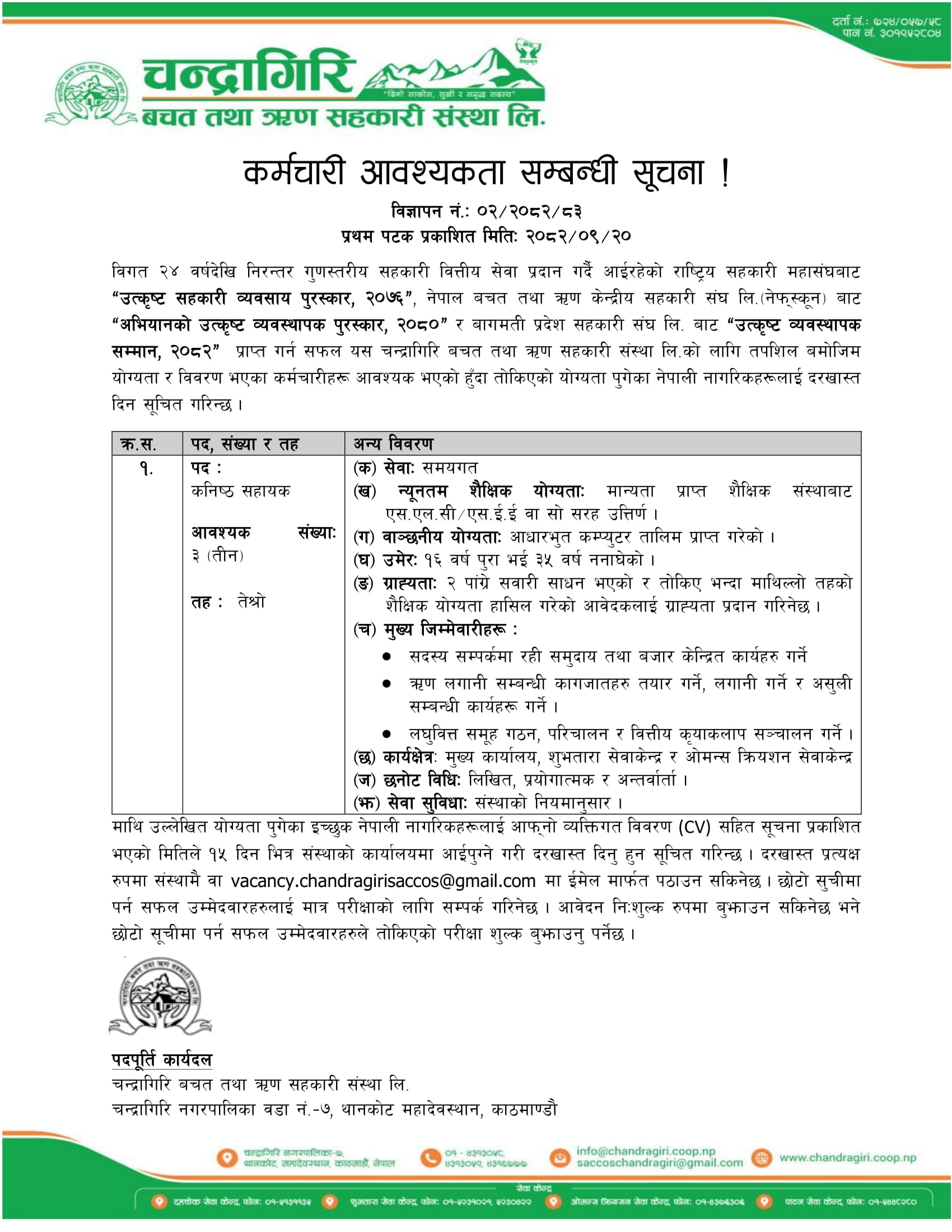 कर्मचारी आवश्यकता सम्बन्धी सूचना ! (मिति : २०८२/०९/२०) by admin | Jan 4, 2026 | career-notices, notices