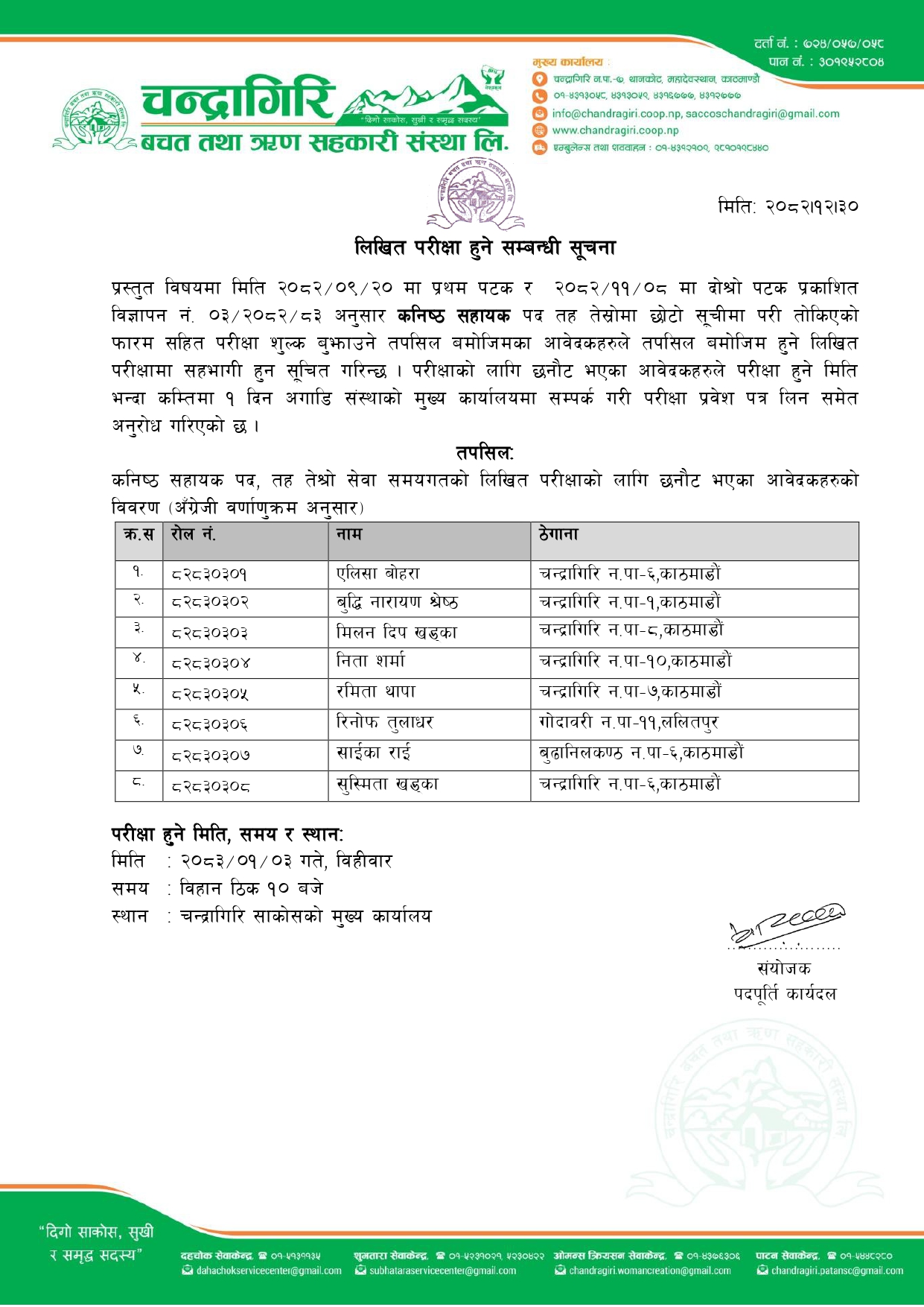 लिखित परीक्षा हुने सम्बन्धी सूचना (मिति: २०८२/१२/३०)